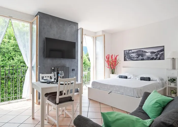 Chiesa di San Bartolomeoから徒歩で5分以内に位置するベッドルーム1室のGuesthost - Lake Como Studio With Balcony & Parking! オッスッチョからは、近くの様々な観光スポットへ行きやすいです。 ビジネスやレジャーのお客様のニーズに合わせて、WiFiを提供しています。